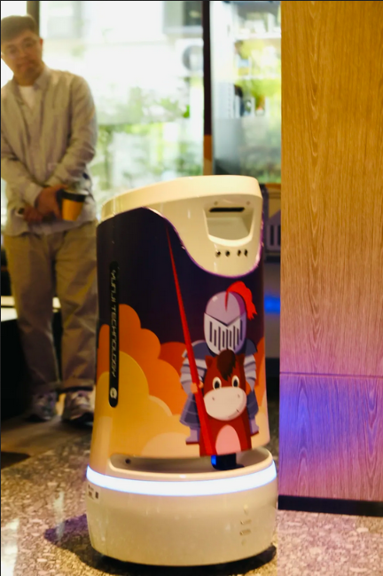 人文的交给管家,科技的交给技术。引入了HDOS系统的骑士物语酒店,客人在客房通过拨打客房电话、扫码房间内小程序即可下达不同的入住需求, HDOS接收到如送物、打扫、报修、叫醒类等不同任务指令后,随即会通过AI自主应答电话问询、智能化分配下达的服务任务、机器人和自动仓自主完成接送物,在减轻酒店工作人员的工作负担的同时,将需求迅速响应完成。