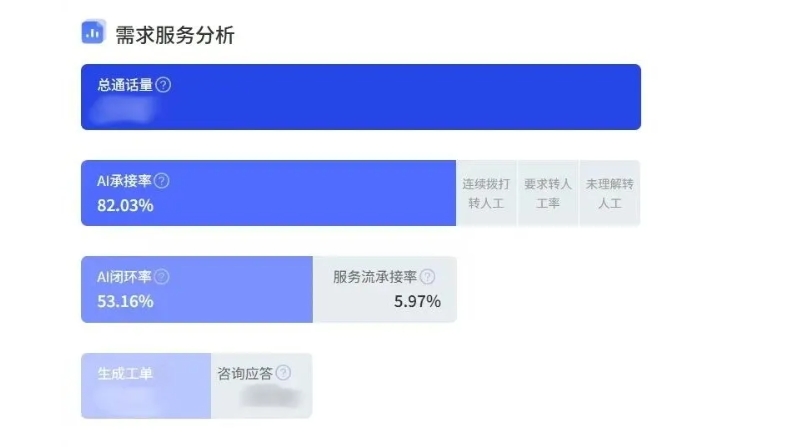 客房发出来的需求,AI语音承接占比75%,单个直营门店更是高达80%以上;配送机器人15分钟工单完成率近100%,高频需求基本实现自动化响应。