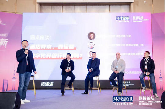 云迹科技高级副总裁&HDOS事业部总经理王啸剑出席活动并与首旅如家酒店集团IT总经理王波、北京宏昆酒店管理有限公司首席运营官王季、盈兴科技总经理胡俊杰及主持嘉宾锦江全球创新中心高级副总裁陈飞一同就《酒店降本,靠运营数字化升级行得通吗》话题进行深入交流。