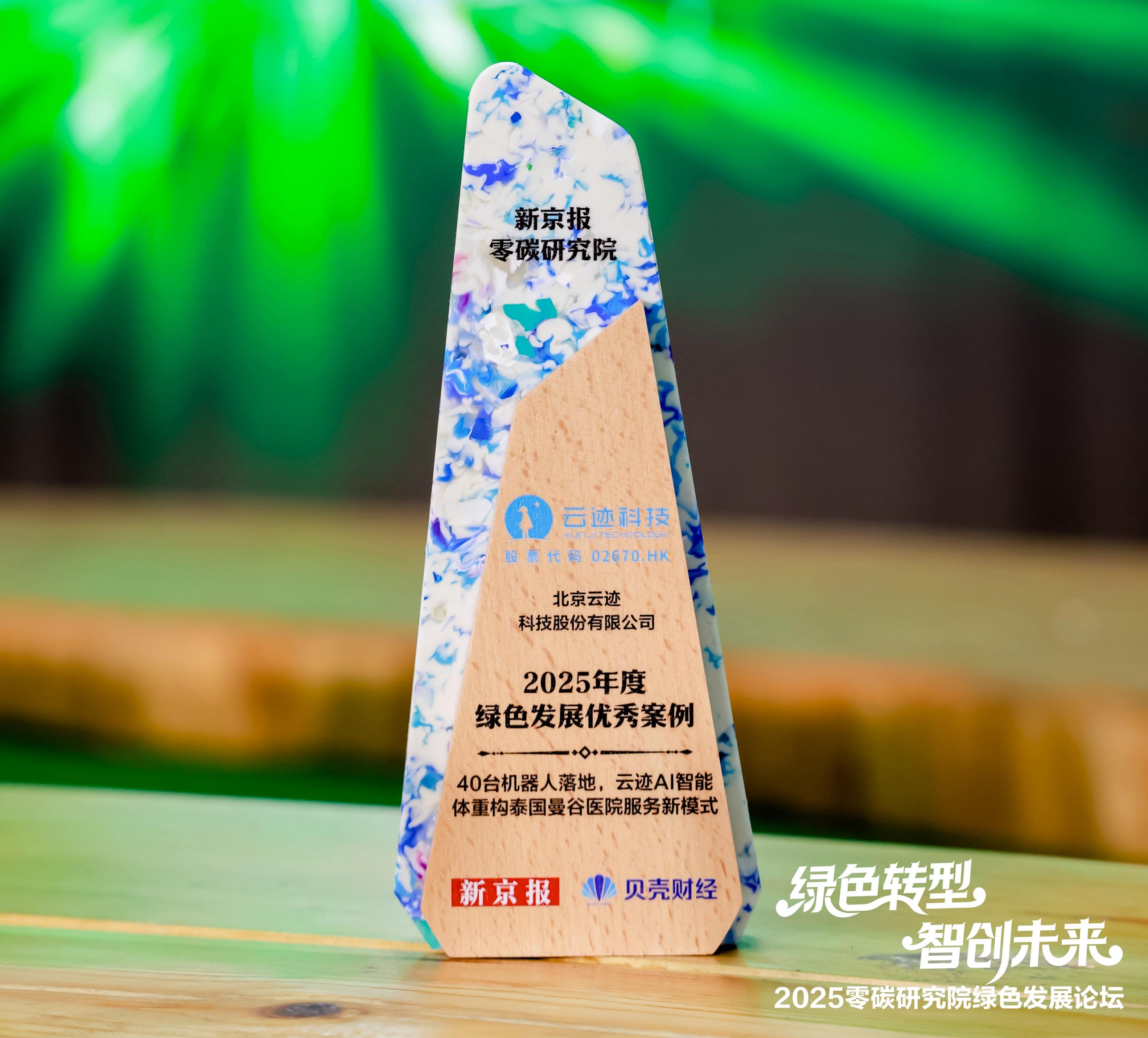 近日,新京报2025零碳研究院绿色发展论坛在北京举行。云迹科技凭借在智慧医疗领域的绿色实践,荣获“2025年度绿色发展优秀案例”。